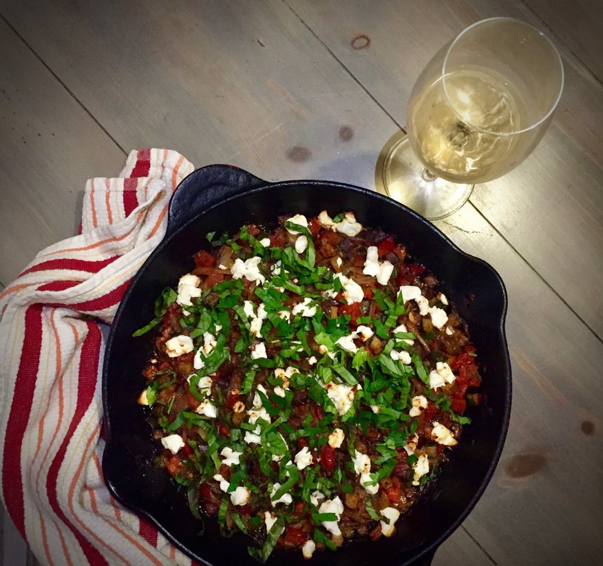 Ratatouille can be made in a variety of ways but this recipe topped with fresh goat cheese and a blend of herbs are a perfect match for Fino Sherry. The wine's herbal, salty qualities reinforce the flavors in the dish, while the clean crispness is a foil to the sauteed vegetables.