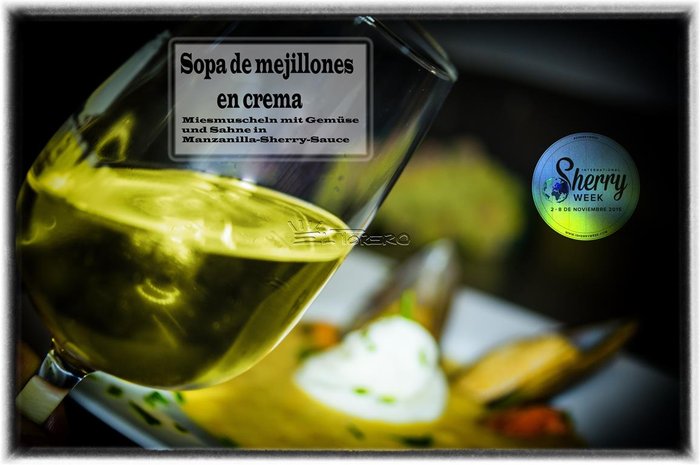 Miesmuschel mit Gemüse und Sahne in Manzanilla-Sherry-Sauce