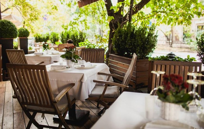 “Aist” is a Restaurant-cafe on the intersection of Malaya and Bol'shaya Bronnaya with its fashionable interior from Eugene Mitta, traditional top service from Arkady Novikov and delicious food from Umberto Rocca. It is fashionable and comfortable on the first floor of cafe "Aist" where everything is subordinated to the logic of space - a chamber but at the same time open. On the second floor of the detached house is the restaurant “Aist” with contemporary fusion cuisine. The Summery al fresco terrace on the roof is a masterpiece. In spring the guests enjoy a dazzling landscape: all the touching beauty of the old uneven streets of central Moscow is one of the most pleasant impressions the city can make.